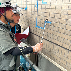 塗装のカスレ、シールの穴、シートの接着性など、目視だけでなく、打診棒を用いてタイルの調査漏れ等も検査いたします。